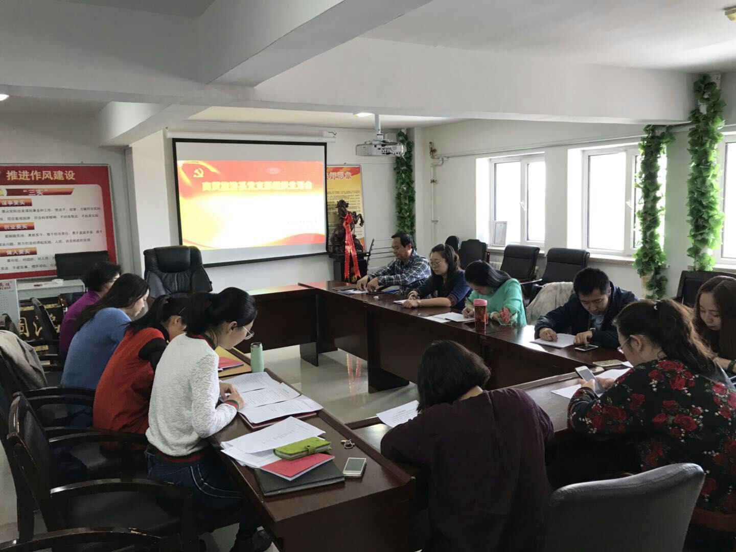 根据学院党委的工作部署,商贸旅游系党支部于3月13日在1号楼6楼会议室召开了专题组织生活会,开展了民主评议党员活动,活动由党支部书记胡胜楠主持,14名党员参加了本次活动。