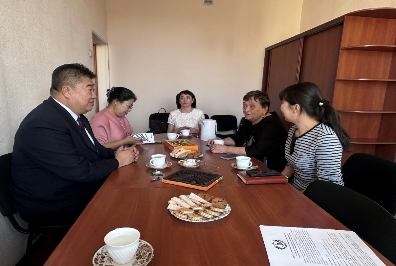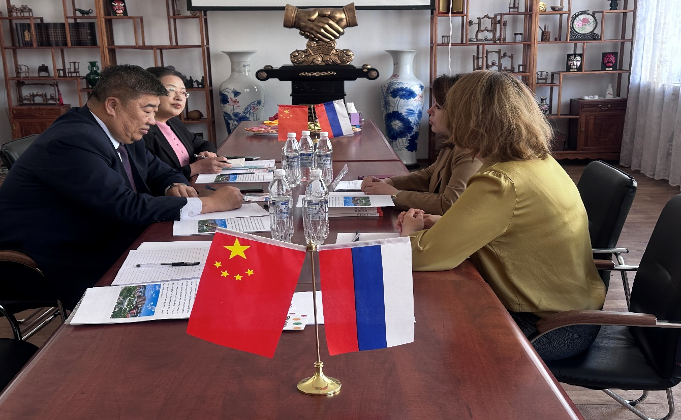 5月16日,两个团组到后贝加尔国立大学汉语言学院参观并座谈,汉语言学院院长介绍了学院历史、师资力量和办学条件及取得的成绩,田朝晖高度认可其办学理念和成效,表达了合作办学的意愿,希望今后在学生深造、教师互访、文化交流等方面展开长远合作,为促进双方交往、加深友谊共同努力。